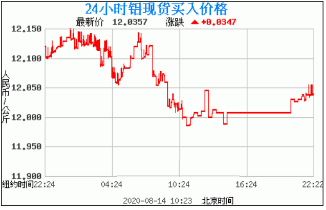 铝锭价格走势图今日最新铝锭行情(2020年8月14日) 今日最新铝锭行情:12.0357 备注:以上钯金价格仅供参考,请以官方价格为准。