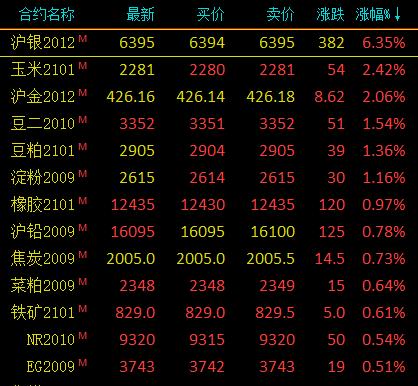 8月14日讯国内期货市场开盘,商品期货涨跌互现,贵金属走高,沪金涨超2%,沪银涨超5%;农产品(8.73+0.46%,诊股)多数上涨,玉米、豆二、豆粕涨超1%。沪铜、燃油、尿素跌超1%。