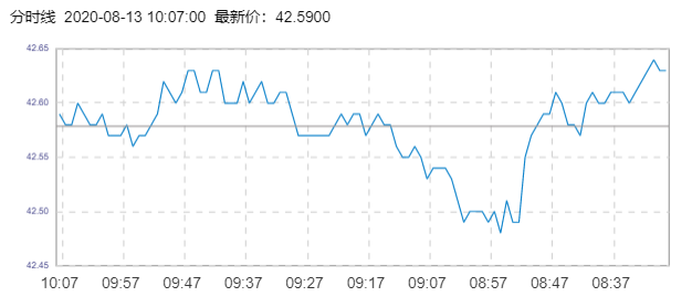 WTI原油价格实时(2020年8月13日) 名称 最新价 涨跌 涨跌幅% 开盘价 昨收价 最高价 最低价 WTI 42.54