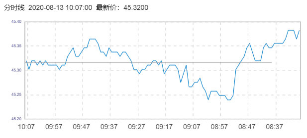 布伦特原油价格实时(2020年8月13日) 名称 最新价 涨跌 涨跌幅% 开盘价 昨收价 最高价 最低价 布伦特 45.