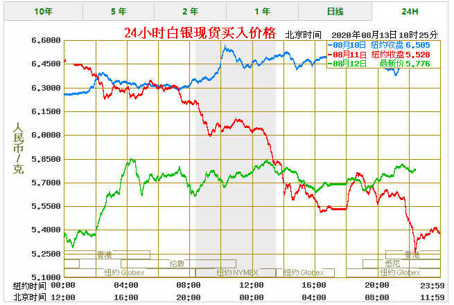 今日银价_今日白银价格走势图(2020年8月13日) 名称 最新价 最高价 最低价 买入价 卖出价 纸白银(美元) 25.82 26.10