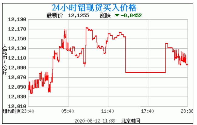 铝锭价格走势图今日最新铝锭行情(2020年8月12日) 今日最新铝锭行情:12.1255 备注:以上钯金价格仅供参考,请以官方价格为准。