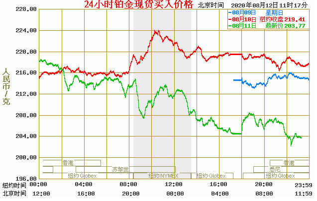 铂金价格走势图今日最新铂金行情(2020年8月12日) 今日最新铂金行情:203.77 备注:以上铜价格仅供参考,请以官方价格为准。