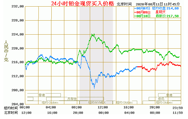 铂金价格走势图今日最新铂金行情(2020年8月11日) 今日最新铂金行情:217.58 备注:以上铜价格仅供参考,请以官方价格为准。