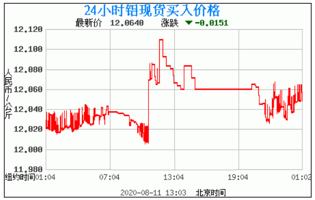 铝锭价格走势图今日最新铝锭行情(2020年8月11日) 今日最新铝锭行情:12.0640 备注:以上钯金价格仅供参考,请以官方价格为准。