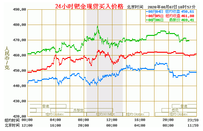 钯金价格走势图今日最新钯金行情(2020年8月7日) 今日最新钯金行情:469.41 备注:以上钯金价格仅供参考,请以官方价格为准。