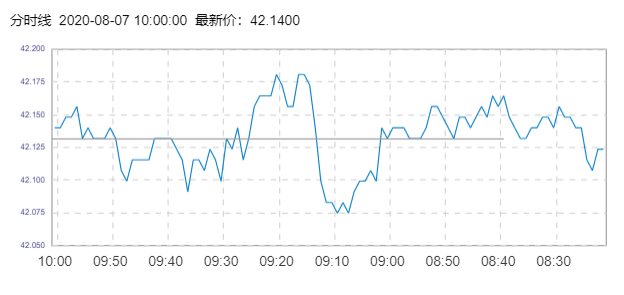 WTI原油价格实时(2020年8月7日) 名称 最新价 涨跌 涨跌幅% 开盘价 昨收价 最高价 最低价 WTI 42.15