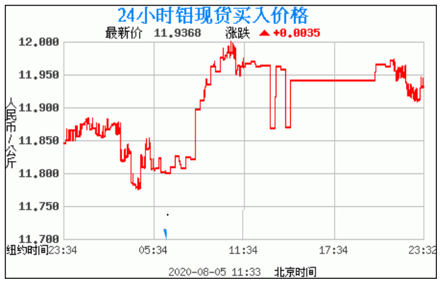铝锭价格走势图今日最新铝锭行情(2020年8月5日) 今日最新铝锭行情:11.9368 备注:以上钯金价格仅供参考,请以官方价格为准。