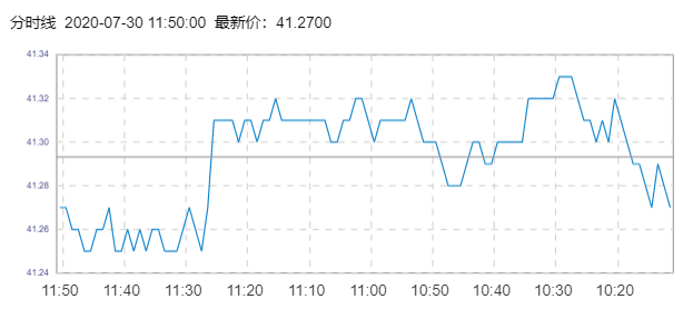 WTI原油价格实时(2020年7月30日) 名称 最新价 涨跌 涨跌幅% 开盘价 昨收价 最高价 最低价 WTI 41.31