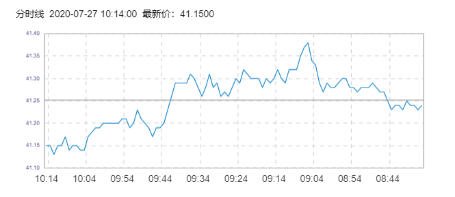 WTI原油价格实时(2020年7月27日) 名称 最新价 涨跌 涨跌幅% 开盘价 昨收价 最高价 最低价 WTI 41.15