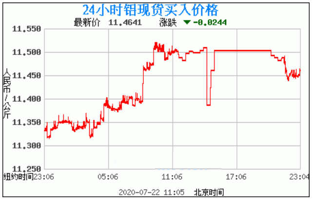 铝锭价格走势图今日最新铝锭行情(2020年7月22日) 今日最新铝锭行情:11.4641 备注:以上钯金价格仅供参考,请以官方价格为准。