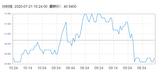 WTI原油价格实时(2020年7月21日) 名称 最新价 涨跌 涨跌幅% 开盘价 昨收价 最高价 最低价 WTI 40.94