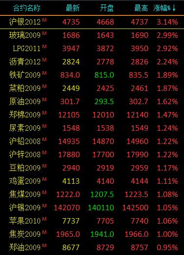 7月21日讯国内期货市场早盘开盘,商品期货涨多跌少。玻璃、菜粕等涨超2%,沥青、郑棉、鸡蛋等涨超1%,豆二、R等小幅上涨;棕榈跌超1.5%,郑醇、郑煤等小幅下跌。