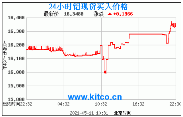 铝锭价格走势图今日最新铝锭行情(2021年5月11日) 今日最新铝锭行情:16.3480 备注:以上铝锭价格仅供参考,请以官方价格为准。