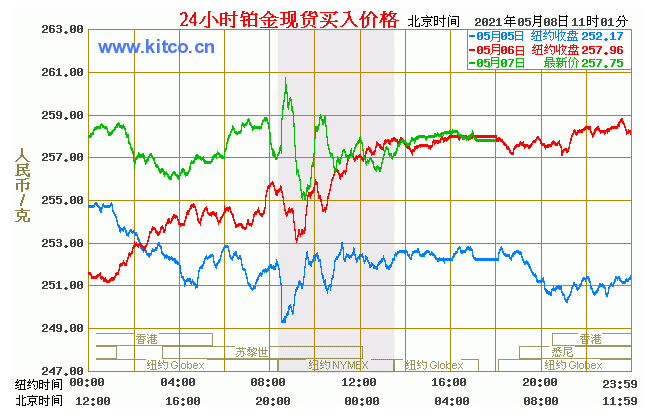 铂金价格走势图今日最新铂金行情(2021年5月8日) 今日最新铂金行情:257.75 备注:以上铂金价格仅供参考,请以官方价格为准。