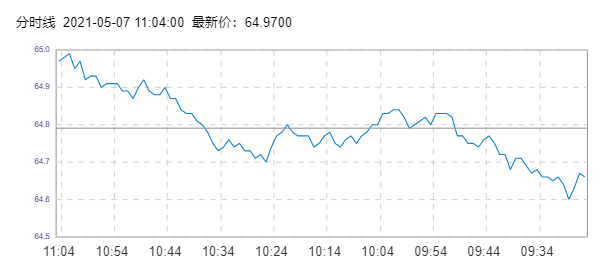 WTI原油价格实时(2021年5月7日) 名称 最新价 涨跌 涨跌幅% 开盘价 昨收价 最高价 最低价 WTI 64.95