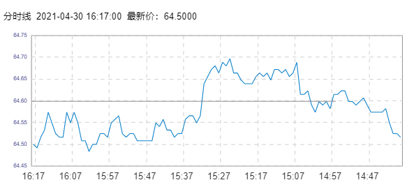 WTI原油价格实时(2021年4月30日) 名称 最新价 涨跌 涨跌幅% 开盘价 昨收价 最高价 最低价 WTI 64.48