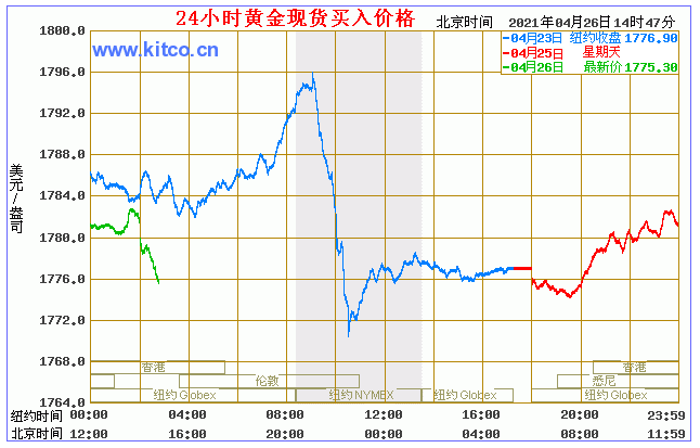(2021年4月26日)国际黄金价格表 名称 最新价 涨跌 涨跌幅% 买价 卖价 开盘价 昨收价 最高价 最低价