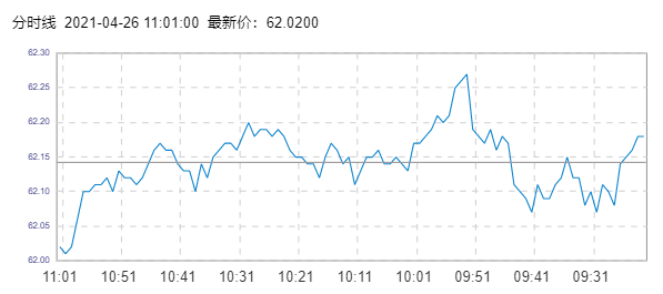 WTI原油价格实时(2021年4月26日) 名称 最新价 涨跌 涨跌幅% 开盘价 昨收价 最高价 最低价 WTI 62.00