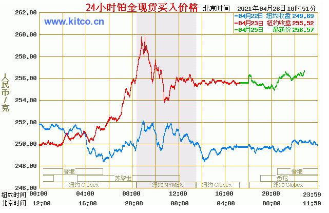 铂金价格走势图今日最新铂金行情(2021年4月26日) 今日最新铂金行情:256.57 备注:以上铂金价格仅供参考,请以官方价格为准。