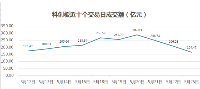 盘面信息综述: 截至5月25日收盘,科创板31只个股飘红,74只个股收跌,全天成交额为164.47亿元,较上个成交日有所萎缩,下降20%。沪指上涨0.15%,报2817.97点;深成指下跌0.11%,报10592.84点;创业板指上涨0.28%,报2052.30点,两市全天成交合计4906.29亿元。今日沪深两市呈现震荡整理格局,沪指、创业板指略