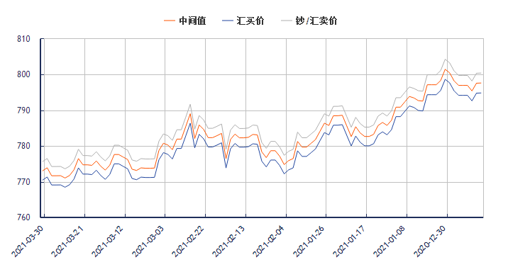 2021年3月30日人民币对美元、欧元、日元、港元、英镑、澳元、新西兰元、新加坡元、瑞士法郎、加元、林吉特、卢布、兰特、韩元、迪拉姆、里亚尔、福林、兹罗提、丹麦克朗、瑞典克朗、挪威克朗、里拉、墨西哥比索及泰铢的市场汇价。 今日人民币对美元汇率中间价一览(2021年3月30日) 今日美元兑人民币报6.5641,