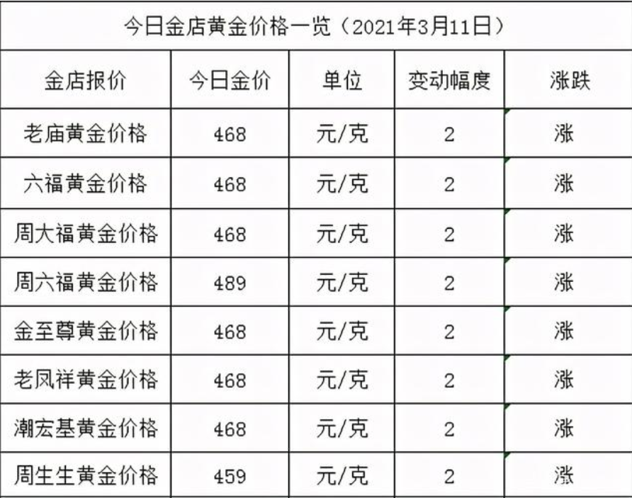 黄金价格今天多少一克亚一金店铂金价格(2021年3月11日) 亚一黄金价格今天多少一克亚一金店铂金价格(2021年3月11日) 亚一金店足金价格 463 元/克 纯度99.0%