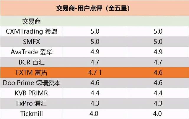 交易商口碑动态 本周,我们继续收到了很多菠萝蜜们对交易商的点评,相信这些点评会给准备选择交易平台的新人们一些参考,那么我们来看一下,本周交易商评分排名有没有变化: 从上表中我们可以看到,除FXT富拓的评分排名发生变化外,其余均保持上周的评分。具体来看,FXT富拓的评分上升了0.1,名