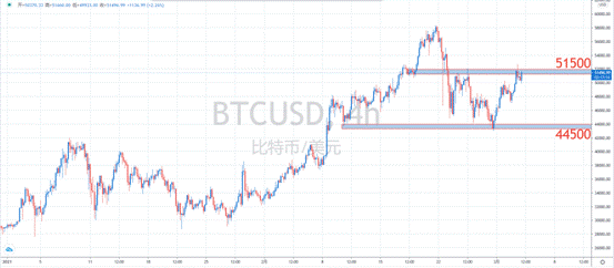 TCUD 美东时间3月8日,灰度信托持仓数据变化如下:灰度TC、TH、TC、CH、LTC信托当日未增持。GTC溢价率-0.06%、TH溢价率-0.02%、TCG溢价率0.37%、CHG溢价率4.35%、LTC溢价率13.36%。 【技术分析】:H1周期,比特币多头发力冲破阻力位,打开上涨空间。持有多头合约的投资者建议继续持有,短期目标54000美
