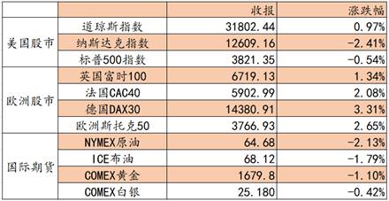 -数据– 美股三大股指走势分歧,盘中纳指与道指分化程度达1993年以来最高。道指盘中创下新高,最终收涨0.97%纳指跌2.41%,标普500指数跌0.54%。科技股板块跌势惨重,早前估值高的科技股纷纷回落。 -美汇指数– 美元指数攀升至三个月高位,突破92关口,10年期国债收益率再度上涨,报1.56%,固定资产收益率