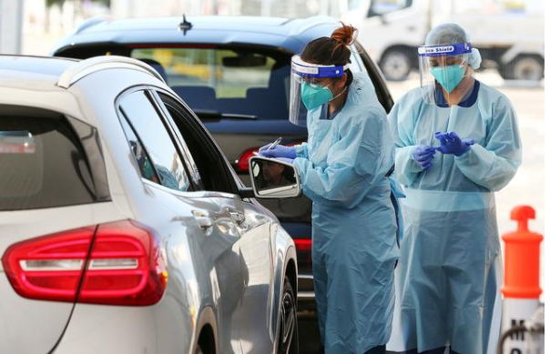 当地时间2020年8月31日,澳大利亚悉尼瑞西卡特湾与邦迪(odi)郊区设立新冠检测点,身穿个人防护设备()的医护人员为民众进行新冠状病毒检测。自维多利亚州新冠疫情爆发后,澳洲东海岸民众担忧加深。