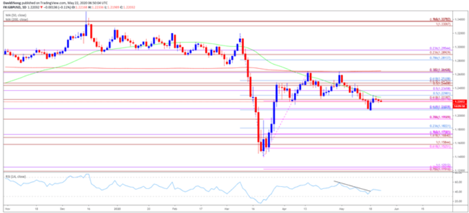 英镑/美元回吐自本月低点(1.2075)以来的涨幅并创下一系列更低的高点和低点;随着价格跌穿4月交易区间,英镑/美元后续或持续面临看跌风险。 5月迄今英镑兑所有其他主要货币全线走软,这一疲软态势可能在本月剩余时间里持续下去。近期英镑/美元下跌而且还下破4月低点(1.2164)。 这一看跌走势是在价格尝试上破200日A