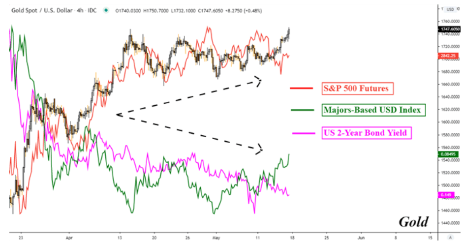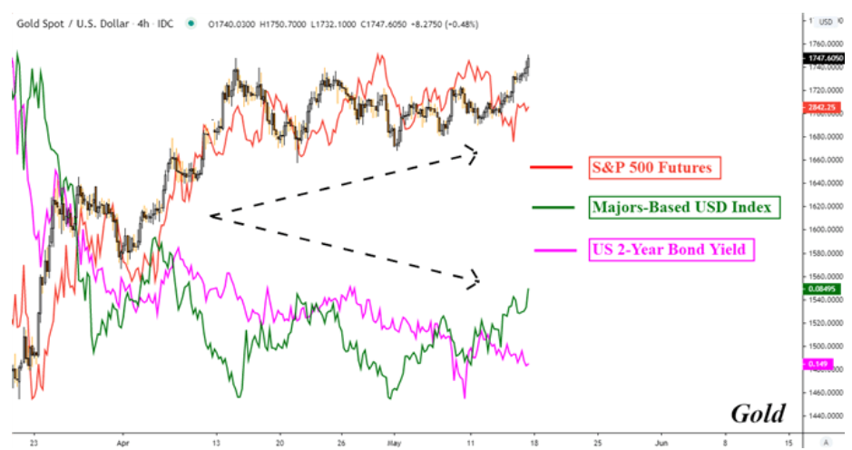 上周五(5月15日)黄金自低位1728美元大幅拉升逾20美元至日内高位1749.2美元,一举突破4月14日创下的年内高位1747美元,而周一(5月18日)黄金更进一步攀升至时段高位1764.3美元,刷新七年半以来新高!黄金在悄然间已录得连续四日上涨,累计反弹幅度逾4%。但在贸易局势以及经济衰退担忧情况下黄金的上涨逻辑正发生改变,
