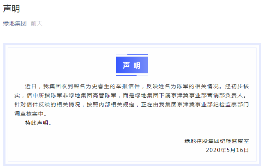 在5月17日晚间,疑为举报人妻子,微博认证名为“uh”的用户深夜爆料称:“遭丈夫威胁恐吓勒索,索赔500万元,还有过家暴...”并表示“在一起期间花费了丈夫60万~70万元”....一则关于绿地高管涉嫌经济违纪和不正当男女关系的微博举报,在网络上迅速传播,引发广泛关注,还一度登上微博热搜。 该封举报信中透
