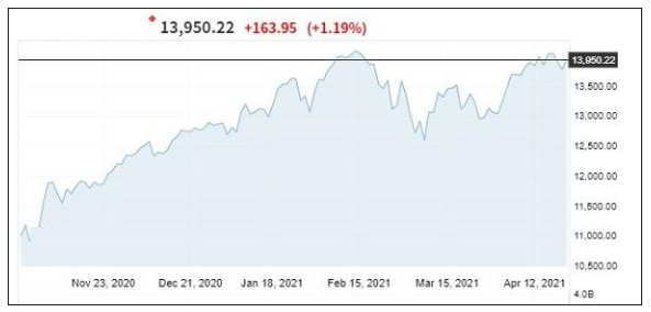 本周美股继续上涨,标普500指数收高1.5%,苹果、亚马逊等科技股走势亮眼;受美疾控中心放松防疫措施影响,经济重启概念股普遍攀升。 截止周五收盘,道琼斯工业平均指数上涨360.68点,涨幅为1.06%,报34382.13点。纳斯达克综合指数大涨304.99点,涨幅为2.32%,报13429.98点。标准普尔500指数上涨61.35点,涨幅为1.49%,