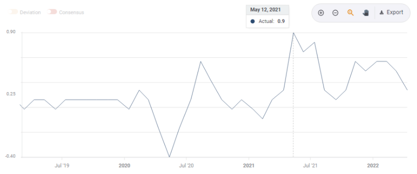 美元的下一个重大变动取决于核心消费者价格指数(核心CI),预计4月和3月分别上涨0.4%和0.3%。上个月的数据出人意料地低,这让人们对这次的数据会更低抱有希望,也让股票交易员看到了隧道尽头的曙光。 首先,为什么核心CI比总体CI更重要?尽管美国人无疑在消费汽油和食品,但这些商品的价格波动很大,美联储对它们几