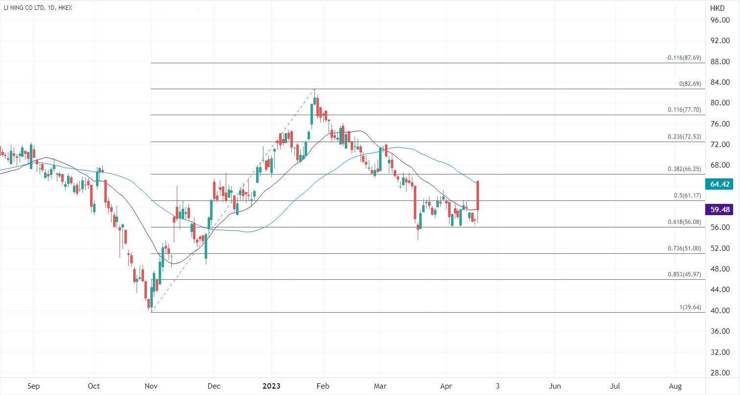ATFX港股:首季同店销售高单位下降,李宁高开13%后直线跳水 ATFX港股:今早李宁(02331)股价随业绩大幅高开13%,其后随大市沽压回吐,盘中跳水但仍保留逾3%的涨幅,为盘中表现最佳的蓝筹。 ▲ATFX图 李宁公布,截至3月底止第一季,以去年同季度初已投入运营的李宁销售点计算(不包括李宁YOUG),第一季整个平台同