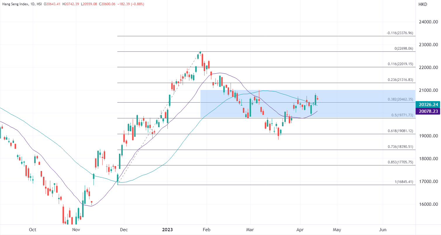 ATFX港股:靓丽GD已提前反映,恒指反复回吐但具备支撑 ATFX港股:中国今早公布第一季度GD按年增长4.5%,高于市场预期增长4%;「三头马车」数据方面,内地3月份社会消费品零售总额按年增长10.6%,预估为7.5%;工业增加值及固定资产投资之数据则逊于市场预期。 港股三日升472点收近两个月高,今早低开后走势反覆,