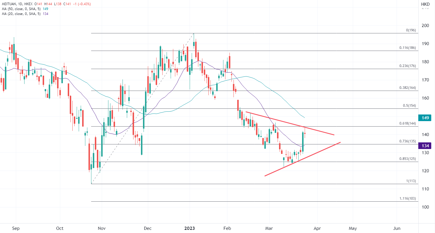 ATFX港股:美团大涨7%后转看Q4业绩,2022年预计扭亏为盈 ATFX港股:昨日港股强势重返两万点关口,科技股中得到业绩鼓舞的腾讯和即将发布业绩的美团均实现超7%的涨幅。今日美团(03690)即将公布去年业绩,市场预期Q4季度盈利持续稳健,绩前美团股价相对靠稳。 根据各大券商的综合预估,美团2022年非国际财务报告准则经