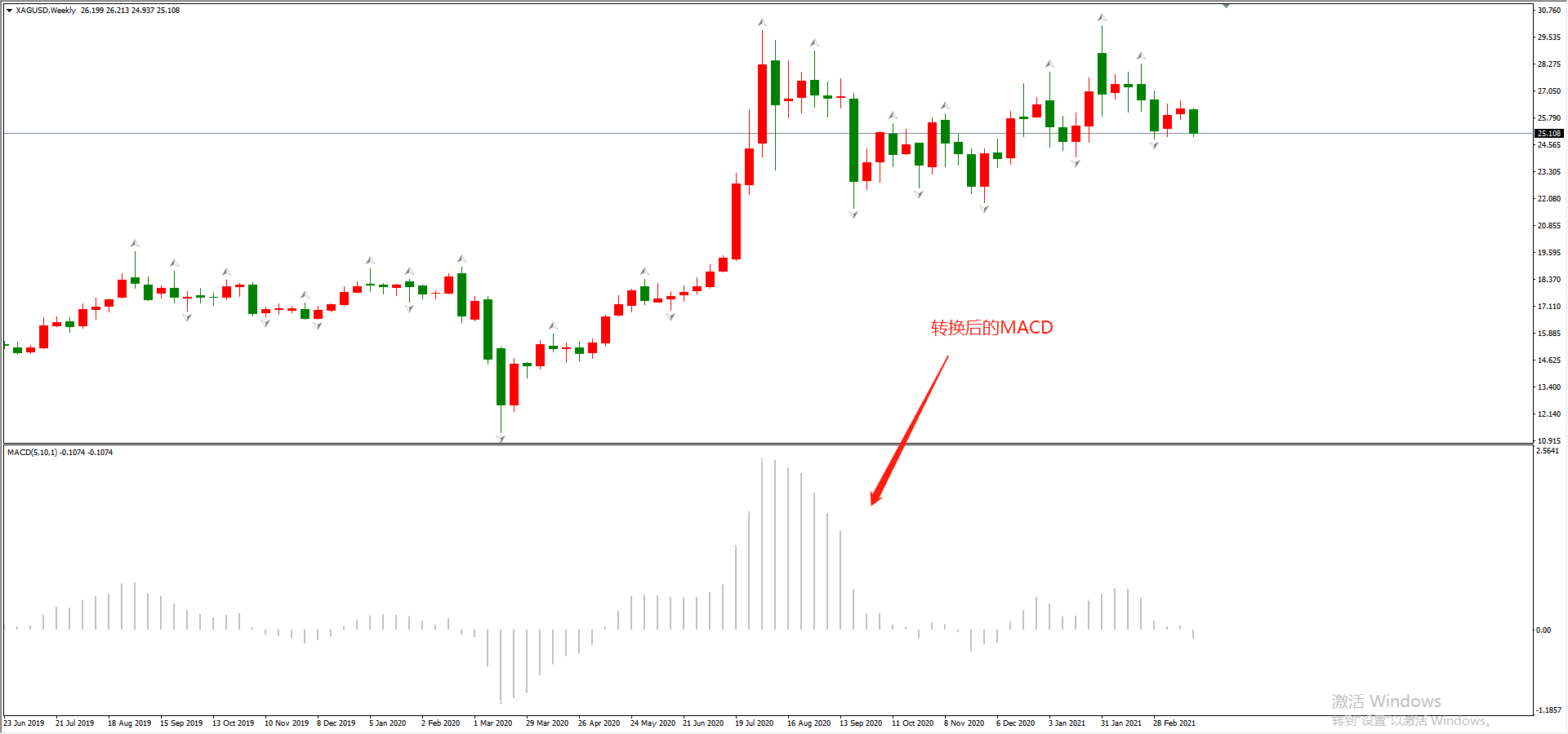 ATFX科普:双均线和RI构成的交易策略 ATFX科普:普通的均线在主图显示,但由于笔者更倾向于在主图上进行结构化分析(勾形+通道),所以将主图上的双均线指标转换为副图指标。转换的基础就是ACD。将ACD的三个参数修正为(5,10,1),指标图中就只剩下了柱状线和与柱状线紧密连接的曲线。将曲线的颜色调整为与背景色一