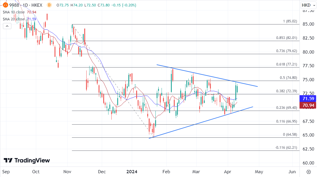 ATFX:马云评“重回健康成长轨道”,阿里巴巴逆市扩大连涨 ATFX港股:阿里巴巴(9988.HK)重组一周年,创办人马云罕有在阿里巴巴的内联网上发布题为《致改革致创新》的长文,称赞集团主席蔡崇信和首席执行官吴泳铭带领集团进行一系列着眼于未来的变革,并表示人工智能时代刚刚到来,阿里巴巴正当其时。 马云的最新
