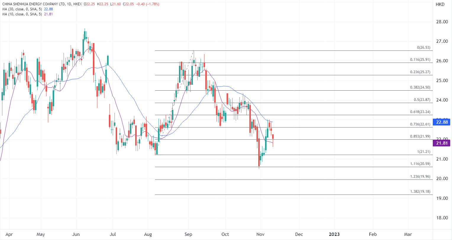 ATFX港股:冬季需求有待释放,煤炭股延续调整模式 ATFX港股:在供需两端均弱势的背景下,煤炭股近期普遍跟随动力煤价格承压,叠加近期多地对煤炭价格涉嫌超出合理区间线索开展核查,周四A股煤炭板块跌逾1%,港股煤炭股延续前一日的下行。 今早兖矿能源(1171.HK)盘中一度跌超5%,午后收窄至逾1%,中国神华(1088.HK)