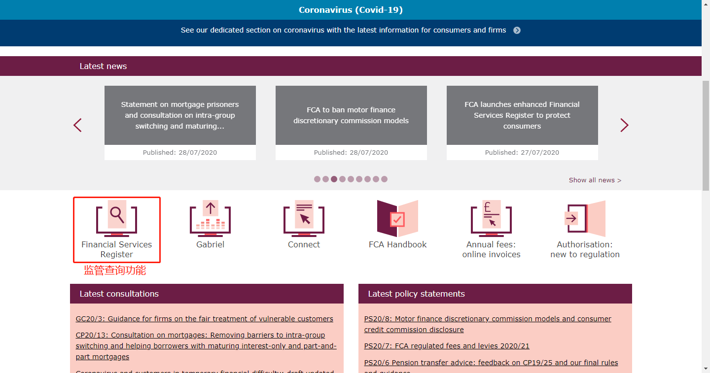 ATFX科普:FCA官网改版,最新查询监管方法大解析 ATFX科普:FCA,英文全称FiacialCoductAuthority,中文名英国金融行为监管局,总部位于伦敦,具有对备案外汇经纪商的监管权力。FCA监管牌照的获取门槛极高且监管异常严格,只有具备足够规模和强大背景的经纪商才能够申请成功,基于此,各家经纪商都以获得FCA监管牌照