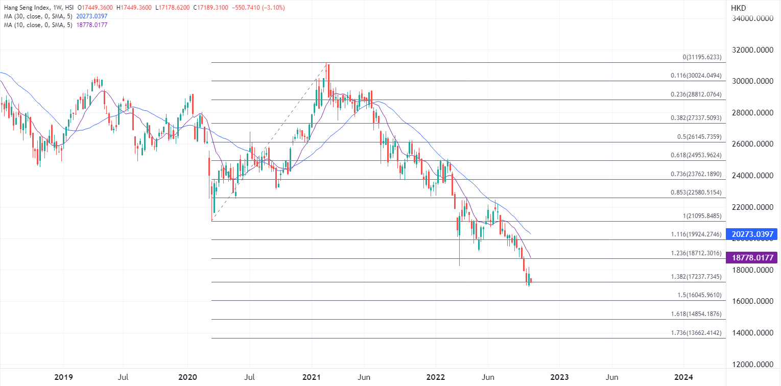 ATFX港股:连跌三个月后,超卖的港股能否迎来整固? ATFX港股:港股9月份再度延续低迷,月线连续第三个月下跌,以13.69%的月度跌幅,在全球主要股指中排名靠后。恒生科技指数9月大跌逾19%,恒指、国企指数也跌逾13%。 整体来看,大市交投清淡,进入10月后,由于第一周内地市场休市,更加缺乏交投人气,近几日交易