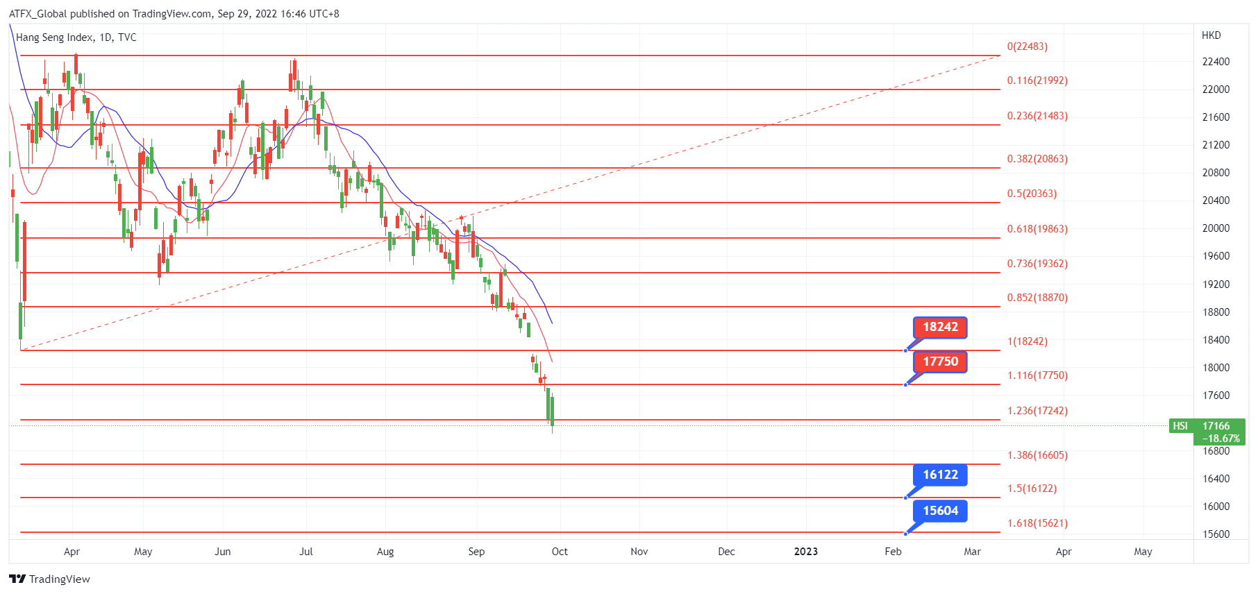 ATFX恒指追迹不一样的国庆假期中港股市较往常低迷 ATFX恒指:过往国庆假期普天同庆,港股受中国经济支持成交畅旺,就算去年疫情影响下投资者情绪仍非常乐观,股市调整过后仍见曙光。可惜今年自二季开始,外围及中国经济影响巨大,中港以至亚洲股市走势持续下行,直至今年的国庆临近,香港股市仍然未见起色。 周四道琼斯指