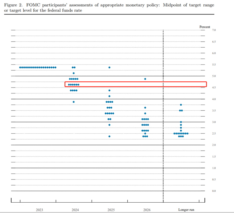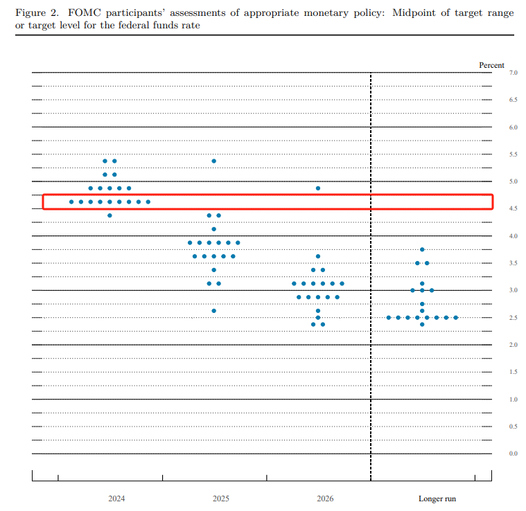 ATFX汇市:鲍威尔重申年内降息,隔夜行情上演“美指跌到,全球吃饱” ATFX汇市:今日2:00,美联储公布最新一期利率决议结果,维持5.25%~5.5%的基准利率不变,QT速度保持不变。点阵图显示,多数委员对2024年底的利率预期依然维持在4.5~4.75%(去年12月份的点阵图同样显示该区间),但对2025和2026年的政策利率中位数预