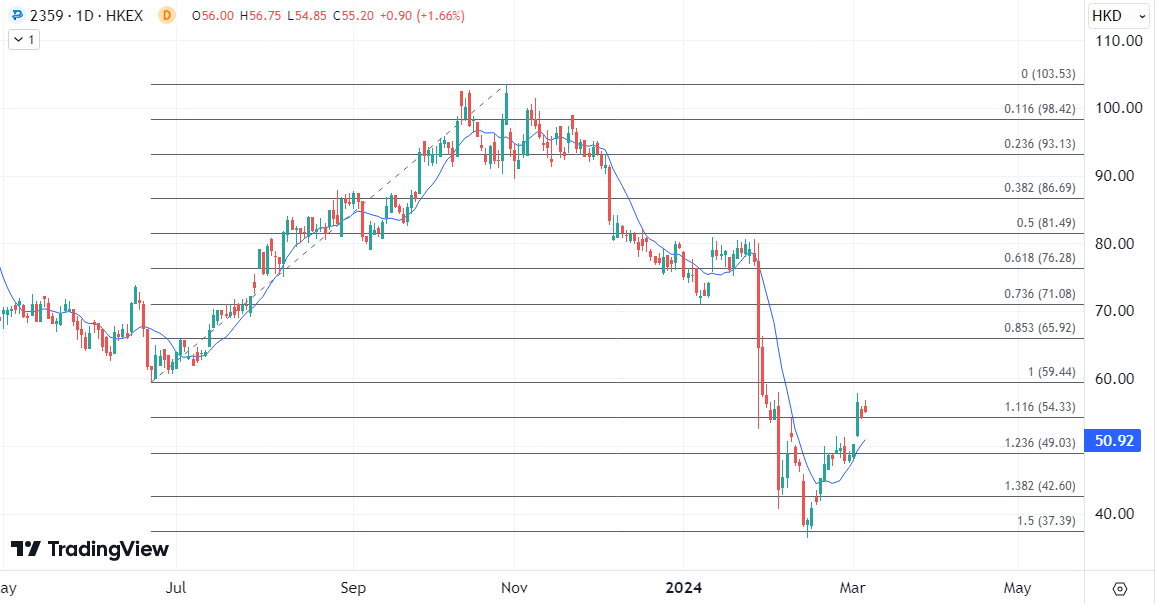 ATFX港股:美国提案听证会前,药明康德股价尝试高开 ATFX港股:本周港股在震荡中走弱,部分板块仍得以逆市上涨,在本周一创新药板块盘中录得急升,CRO概念全线反弹,但在周二又几乎全线回落。 由于对美国潜在制裁的担忧减弱,周一药明康德港股曾上涨11%,A股也上涨7.3%。药明生物也大涨11%,药明合联更是大涨18%。