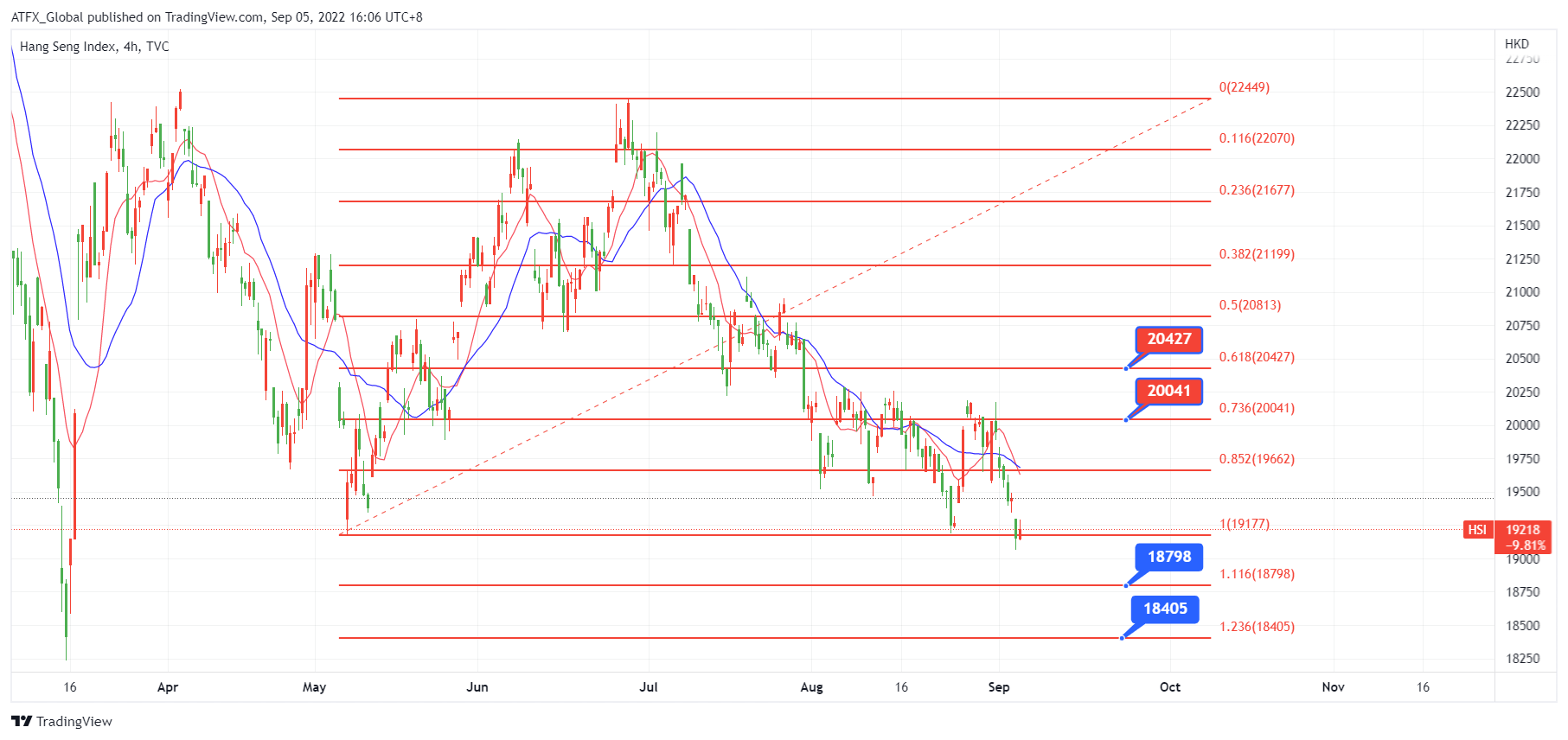 ATFX恒指追踪恒生指数险守一万九千点边。 ATFX恒指:周一中国一项调查显示,财新服务业采购经理人指数8月份为55,而分析师预计8月份的读数为54。中国服务业活动在8月的扩张幅度超过预期,因为强劲的消费者支出帮助该行业在今年度过了新冠疫情和与能源相关的逆风。 该数据表明,尽管制造业疲软,中国经济的消费者支