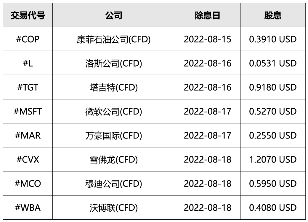 尊敬的客户: 您好! 下表提供的资料,是本公司提供的股票及TF差价合约相关股票的除息日,或其他公司行动即将发生的日期。