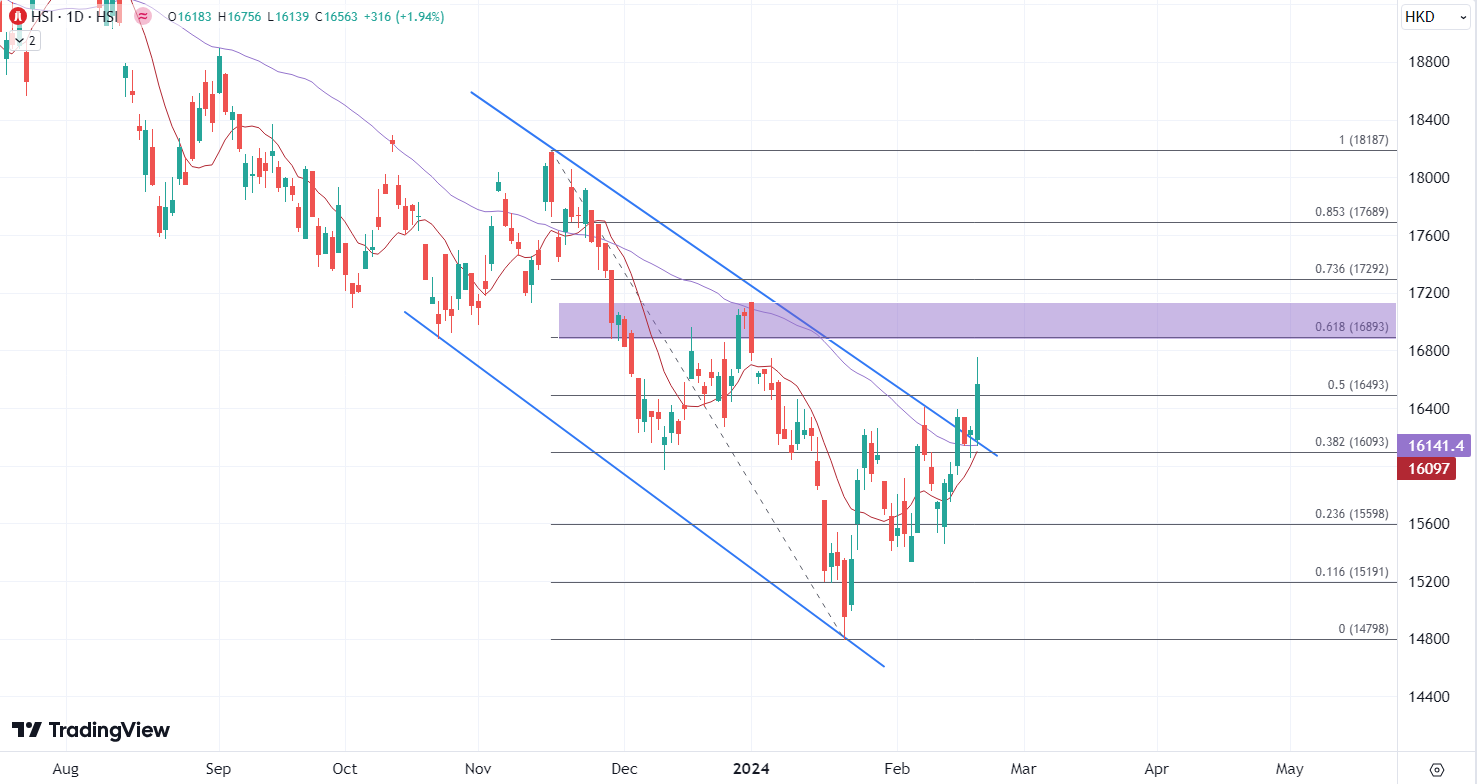 ATFX港股:恒指假期后三连阳,下降通道或将被突破,涨势强劲的原因是什么? ATFX港股:香港交易所在上周三就已经开盘,至上周五连续三日收阳,累计涨幅3.77%。同期的A股市场仍处于休市阶段,至本周一春节后开盘,必定会对港股市场上周的强势表现有所反映。不出意外,今日上证指数以跳涨开盘,截至今日10:07,上证指数涨